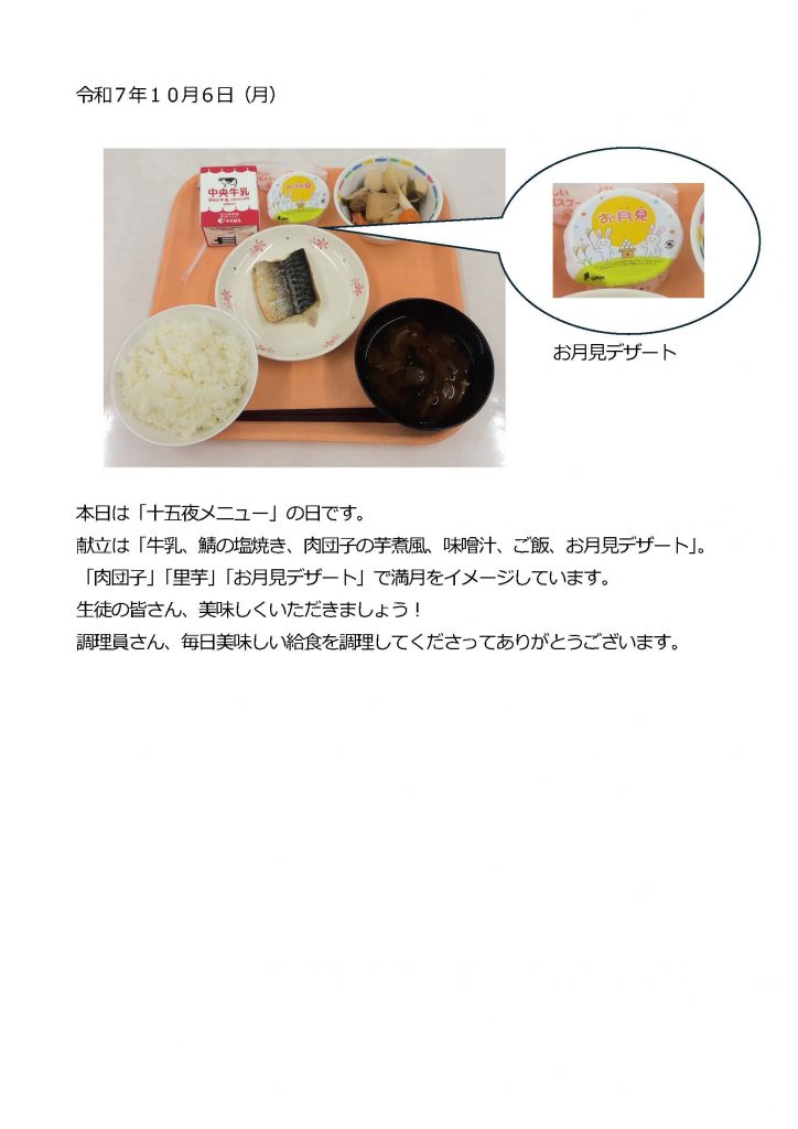 定時制 学校給食「十五夜メニュー」が提供されました。