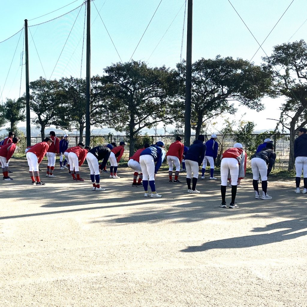 12月6日に中学生硬式体験会を知多翔洋高校グランドで行いました。大府東高校も含めた3校で中学生と共に硬式野球をしました。知多地区に残って高校野球をやってくれたら…という願いもあります。