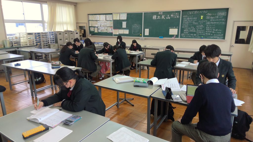 とても楽しくてまじめな部活です。簿記の勉強を頑張りたい方、検定をたくさん取りたい方、ぜひ見に来てください。